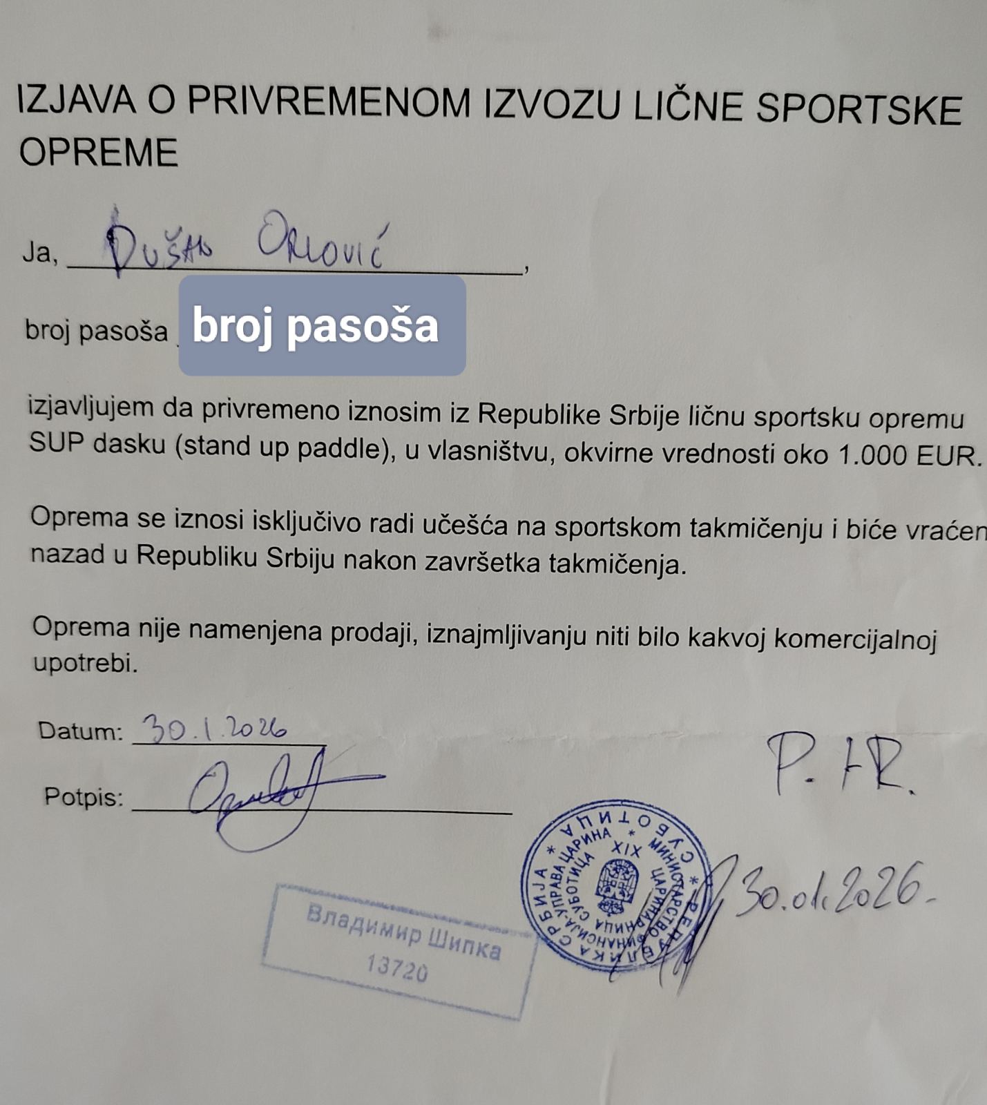 Procedura za prenosenje daske preko granice